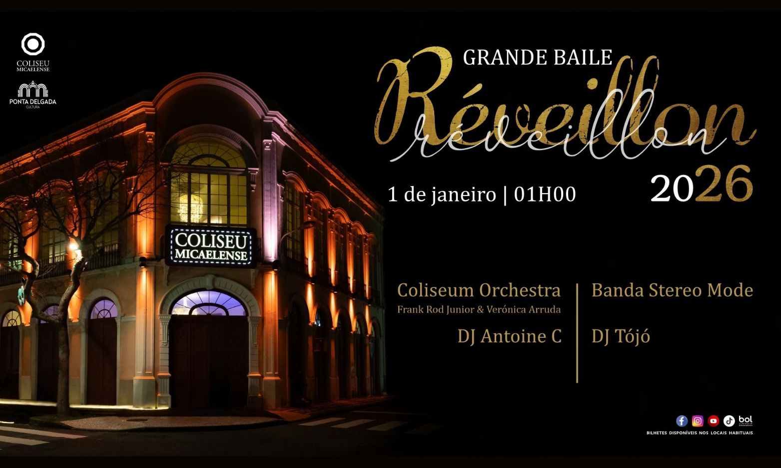 2026 aproxima-se e, com ele, mais um Grande Baile de Réveillon no Coliseu Micaelense!