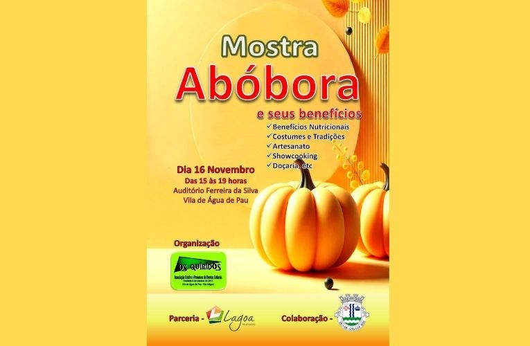 A Associação Cultural e Promotora de Eventos Culturais “Os Quiridos”, em parceria com a Câmara Municipal de Lagoa e com a colaboração da Junta de Freguesia de Água de Pau, promove, no dia 16 de novembro, a Mostra “Abóbora e Seus Benefícios”, um evento dedicado à valorização deste fruto tão versátil, rico e enraizado nas tradições açorianas.